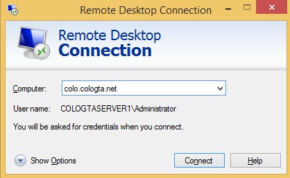 3.โปรแกรม Remote Desktop จะถูกเปิดขึ้นมา แล้วหลังจากนั้นให้นำ IP ใส่ลงไปในช่อง Computer: ได้เลยแล้วกด Connect