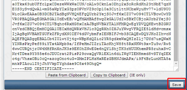 6 นำ Code ในข้อ 5 ไปใส่ไว้ที่หน้าติดตั้ง CA Root Certificate จากนั้นคลิก Save